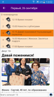 Отображение подробной телепрограммы XMLTV EPG или Яндекс.Телепрограммы