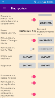 Экспорт/импорт стартового плейлиста, избранного и привязок к телеканалам